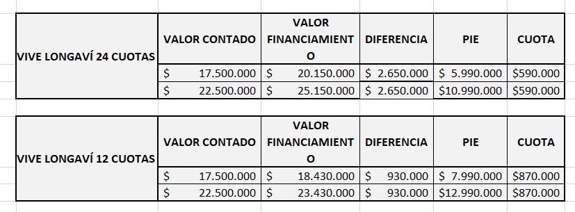 Financiamiento Directo Pie mínimo $5.990.000